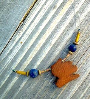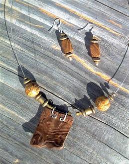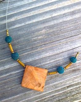 Wald - vielfältig und geheimnisvoll: Wahre Kostbarkeiten sind dort verborgen. Beim aufmerksamen Waldspazieren erscheinen sie, die Waldschätze, an Bäumen oder auf dem Boden. Hutzelige Maserknollen geben ihre Geheimnisse erst beim Aufschneiden preis. Je nach Baumart erkennt man in den Maserungen verschiedene Farbtöne und kontrastreiche Muster. Der Grünspanbecherling zeichnet Grünblau ins Holz und der Leberpilz ein rötliches Braun. All dies „gestockte Holz“ finden wir in unseren Wäldern. Mit einfühlsamem Blick, Phantasie und Kreativität kann man außergewöhnliche Unikatschmuckstücke daraus herstellen. Wer mag, kann den Wald nicht nur im Herzen, sondern genauer gesagt - auch um den Hals tragen.