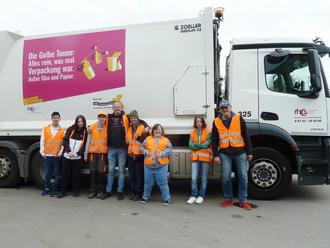 In Kirchberg gab es zur Begrüßung Warnwesten für alle und dann ging es in den Wald, wo verschiedene Stationen aufgebaut waren. An den Stationen durfte jeder selbst testen, ob er den Müll in die richtigen Mülltonnen sortieren kann. Man durfte aber auch Müll ausgraben und dabei sehen, welche Verpackung wirklich verrottet. Dann ging es weiter zur Mülldeponie, wo der Sperrmüll sortiert wird.