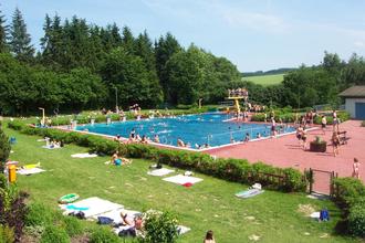 In der modernen Freizeitanlage, bestehend aus einem Schwimmbecken mit integriertem Sprungbecken, Sprungturm und Sprungbrett, einem Nichtschwimmerbecken mit Rutschbahn sowie einem Kleinkinderplanschbecken mit verschiedenen Attraktionen und Kleinkinderspielplatz, wird das Wasser stets auf einer angenehmen Temperatur von 24 Grad gehalten sowie ständig umgewälzt und gereinigt. Attraktionen wie Rutschbahn Wassersprudler, Wasserpilz, Bodensprudler, Wasserspeier, Wasserkanone oder eine Insel sorgen für zusätzliche Abwechslung.
