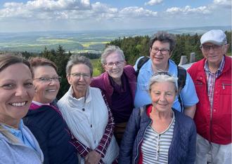 Am Ziel angekommen, wagten viele Seniorinnen und Senioren den Aufstieg auf den Aussichtsturm, wo in windiger Höhe die wunderbare Aussicht genossen wurde.