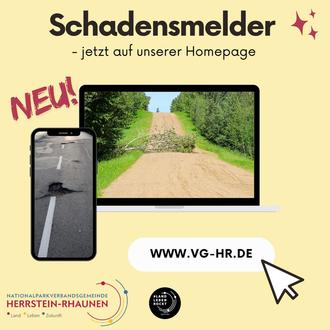 Der Schadensmelder ist ab sofort auf der Homepage unter www.vg-hr.de (Button auf Startseite) verfügbar.