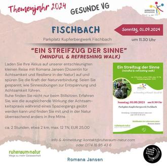 Lust Neues auszuprobieren? Nutzen Sie die Gelegenheit und erleben Sie unsere Heimat mit allen Sinnen am Sonntag, 01.09.2024 um 11.30 Uhr, Treffpunkt Parkplatz Kupferbergwerk Fischbach.