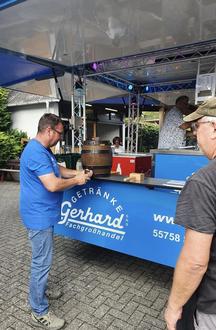 Mit dem Fassanstich und Freibier eröffnete Ortsbürgermeiter Olaf Crummenauer mit dem ersten Glockenschlag die „Brämerekirb 2022“.