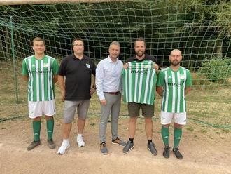 Unser Ortsbürgermeister Frank Marx finanzierte mit seiner Firma MARX MediTech die neuen Trikots im traditionell grün-weiß gestreiften Muster.