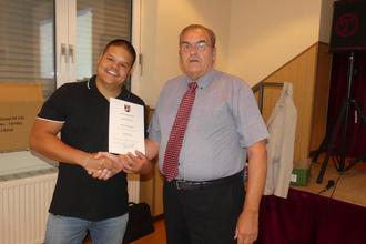 Zum Schluss dankte er seiner Frau Susanne mit einem Blumenpräsent für die vielen Unannehmlichkeiten in all den Jahren die sie neben seiner häufigen Abwesenheit geduldig ertragen hat.