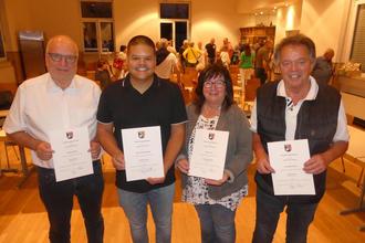 „Jedem Anfang ist ein Ende voran gegangen“, sagte Klingel zu Beginn einer Reihe von Ehrungen. Geehrt wurden für 15 Jahre: Dieter Schäfer, Bernd Dräger, Gisela Münch-Kronz. Für 20 Jahre Gerd Kessler, Johanna Hofmann. Für 25 Jahre Jürgen Hamann, Für 35 Jahre Hermann Schub, für 55 Jahre Arnold Scherer. Für 30 Jahre Klaus Peschel (Beigeordneter und Beauftragter für den Friedhof). 20 Jahre Heidi Jaenicke (Gemeinderat und Beigeordnete), 15 Jahre Manfred Haubert (Gemeinderat und Beigeordneter), 10 Jahre Rainer Fuck (1. Beigeordneter), Torben Klingel (Beauftragter für die Homepage). „Alle haben ihre Freizeit reichlich für das Wohl der Gemeinde eingesetzt, viele Stunden in Sachentscheidungen investiert. Wer sich engagiert und einbringt, kann auch etwas bewirken“, stellte Manfred Klingel fest, und überreichte jedem eine Urkunde und ein Präsent.