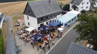 Nach dem gemütlichen Frühschoppen am Sonntag hatten wir wahnsinnig viele Gäste zum Mittagessen. Unser selbstgemachter Krautsalat, die Krumbiere, die extra für die Kirb geerntet und von vielen Helfern geschält wurden und dann weiter zu Bratkrumbiere verarbeitet wurden, sowie unser Rollbraten aus dem holzbefeuerten Backes kamen sehr gut an. Für Wildliebhaber hatten wir auch Rollbraten vom heimischen Wild.