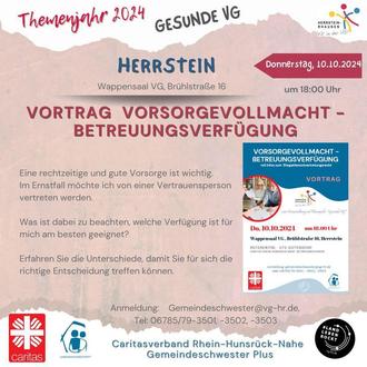 Eine Veranstaltung im Themenjahr gesunde VG in Kooperation mit dem Caritasverband Rhein-Hunsrück-Nahe sowie der Gemeindeschwester Plus.