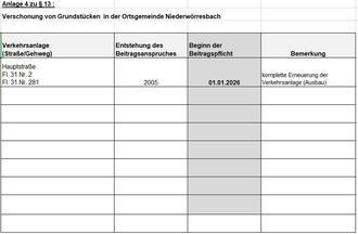 | Anlage 4: | Verkehrsanlagen Übergangs- bzw. Verschonungsregelung |