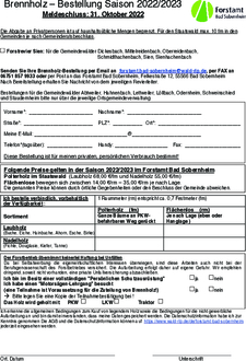Wenn Sie nicht innerhalb von vier Wochen nach Absendung Ihrer Bestellung oder bis Ende November 2022 eine Rückmeldung erhalten, können Sie davon ausgehen, dass Ihre Holzbestellung in der kommenden Einschlagssaison berücksichtigt wird.