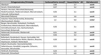Maßgebend für die Einstufung in die Härtebereiche ist der Wert Millimol Calciumcarbonat je Liter.