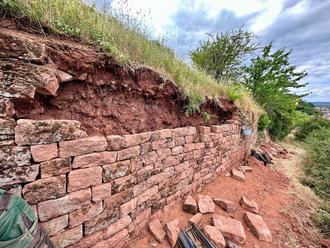 Direkt nach dem Einsturz wurde die Schadstelle inspiziert und begutachtet. Eine Fachfirma hat die Trockenmauer wiederhergestellt. Diese Arbeiten sind abgeschlossen und der Weg ist wieder nutzbar.