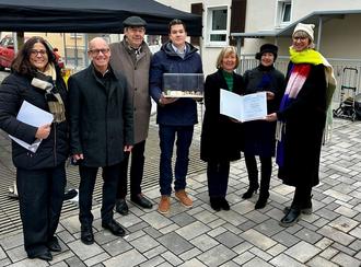 Für das neue Wohn- und Geschäftsgebäude am Marktplatz in Nackenheim wurde der Förderbescheid der ISB (Investitions- und Strukturbank RLP) für sozial geförderten Wohnraum an die Bauherrengemeinschaft Familie Heidacker im Rahmen einer kleinen Feierstunde am 28.11.2025 in Ingelheim überreicht.