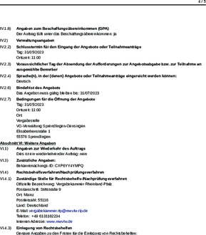 Die Bekanntmachung für das Vergabeverfahren wird u. a. veröffentlicht auf der Vergabeplattform Kommunen Rheinland-Pfalz https://rlp.vergabekomunal.de, der Homepage der Verbandsgemeinde Gau-Algesheim, Amt für Veröffentlichungen der Europäischen Union, www.bund.de. Die Vergabeunterlagen werden auf die Vergabeplattform Kommunen Rheinland-Pfalz eingestellt.