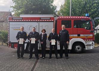 Im Anschluss der Wahl des stv. Wehrführers wurde Thomas Geibel zum Hauptbrandmeister ernannt und zum Verbandsführer bestellt, Lorenz Stritter nach erfolgreichem Gruppenführerlehrgang zum Brandmeister ernannt und zum Gruppenführer bestellt.