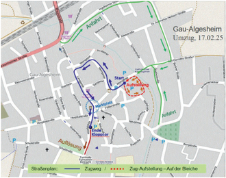 Wir bitten die Bürgerinnen und Bürger, die betreffenden Straßen für den Fastnachtszug und das närrische Treiben freizuhalten.