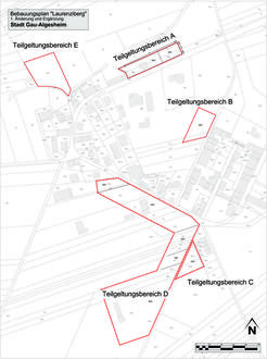 Der Geltungsbereich gliedert sich in vier Teilgeltungsbereiche und umfasst die Flurstücke