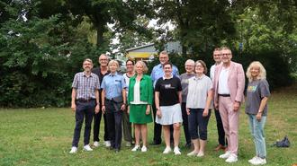Oberbürgermeister Thomas Feser (2. v. re.) mit den Verantwortlichen des KPR, der Schulen und der Polizei. Foto: Stadt Bingen
