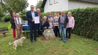 Der Jahrgang hatte anlässlich seines 50. Geburtstages im Jahr 1992 am Auffangbecken in der Pfarrer-Seibertz-Straße einen Baum gepflanzt, einen Gedenkstein gesetzt und eine Bank gestellt. Hier und auch bei anderen Gelegenheiten treffen sich die Alterskamerdinnen und -kameraden gerne zum gemütlichen Beisammensein - so auch am vergangenen Donnerstag. Es war ihnen ebenfalls eine große Freude, dass das Binger Stadtoberhaupt gekommen war und dankten Oberbürgermeister Feser mit einer persönlichen Urkunde.