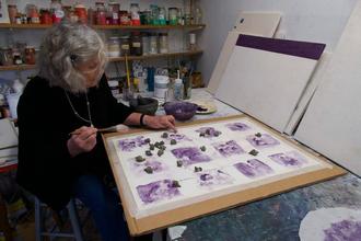 Die Künstlerin Darina Doyle zeigt ihre Werke mit selbstgemachten Naturfarben.