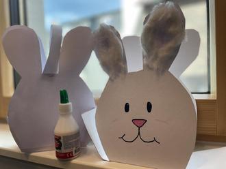 Die Kinder basteln einen Osterkorb zum Eiersammeln.