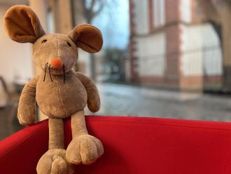Bini-Maus freut sich auf die nächste Vorlesestunde.