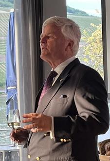 Und in seiner Eigenschaft als Unternehmensberater ließ es sich Prinz zur Lippe nicht nehmen, über die aktuell großen Herausforderungen der Deutschen Weinbranche wie Übermengen aus dem Ausland, massivem Preisdruck, hohen Mindestlöhnen und nie gekannten Exportunsicherheiten zu referieren. Aber natürlich sprach er auch die Folgen des Klimawandels an. So hat ein Nachtfrost im April 2024 dazu geführt, dass Schloss Proschwitz - so der Name des adligen Weinguts - zuletzt nur 23 % seiner durchschnittlichen Traubenmenge ernten konnte. Angesichts dieser Unbillen freute sich Prinz zur Lippe zum Abschluss über eine Magnum Rheinriesling aus der Lage Binger Schloßberg Schwätzerchen, die das Weingut Hildegardishof gesponsert hatte. Die Reihe von Degustationsmenüs in der Binger Vinothek wird ab Oktober 2025 fortgesetzt; die weinfrohen Donnerstage mit Fünfer-Weinproben werden auch über den Sommer hinweg stattfinden.