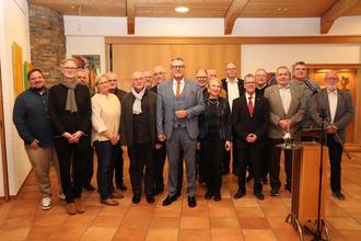 Traditionell lud die Stadt am Martinstag wieder Vertreter der Binger Geistlichkeit, Ehrenbürgerinnen und Ehrenbürger sowie Mitglieder des Stadtrats und Mitarbeitende der Verwaltung zur Martinsfeier ins Hildegardforum ein. Oberbürgermeister Thomas Feser zeichnete neun Personen für ihre mindestens zehn bzw. 15 Jahre andauernde Mitarbeit in städtischen Gremien mit dem Wappenteller bzw. dem Ehrenring der Stadt aus und verabschiedete 14 ehemalige Ratsmitglieder, die seit der Kommunalwahl nicht mehr im Stadtrat tätig sind.