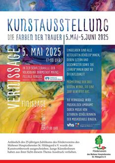 2025 feiert der Förderverein des Malteser Hospizdienstes St. Hildegard e. V. in Bingen sein 25-jähriges Bestehen und hat zu diesem Anlass einen Kunstwettbewerb für Schülerinnen und Schüler zum Thema „Welche Farbe hat Trauer“ ins Leben gerufen.
