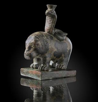 Aus der Ausstellung: Nilpferd mit Cobra.