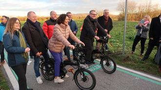 Start frei für die Radfahrer: Verkehrsministerin Daniela Schmitt und der Binger Oberbürgermeister Thomas Feser weihen das Teilstück der Pendlerradroute zwischen Bingen und Heidesheim offiziell ein.