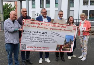 „Schon über viele Jahrzehnte setzt sich die Caritas in Bingen professionell für die Menschen ganz am Rande der Gesellschaft ein und zeigt mit den unterschiedlichsten Angeboten auch Wege aus der Not auf. Dafür sind wir sehr dankbar“, so Oberbürgermeister Thomas Feser, der auch gleichzeitig Schirmherr des Festes „75 Jahre gegen Isolation und Einsamkeit“ ist. Bei dieser Veranstaltung am Freitag, 13. Juni, ab 12 Uhr (die kulinarischen Angebote stehen bereit, der offizielle Festakt beginnt um 13 Uhr), wird rund um die Basilika der 40. Geburtstag der Herberge Bingen und gleichzeitig der 35. Geburtstag der Caritas aktiv St. Antonius gefeiert.