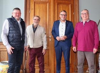 Amtsleiter Ralf Klingler (li.) und Oberbürgermeister Thomas Feser (2. v. re.) bedanken sich bei Dieter Moritz und Gerhard Hemicker (re.).