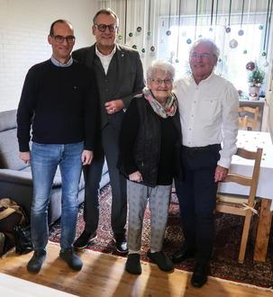 Oberbürgermeister Thomas Feser (2. v. li.) überbrachte Maria Bernd im Beisein ihrer Söhne die besten Glückwünsche.