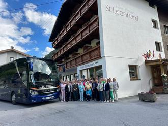 Am Sonntag, dem 09.06.2024 starteten wir unsere Tour ins Pitztal, St. Leonhard / Österreich mit 36 Personen. Während der Fahrerpausen wurden Kaffee, Kuchen, Getränke und Snacks gereicht. Nach etwa 7-stündiger Fahrt, ohne Staus, begrüßte uns der Hausherr des Hotels, Markus Kirschner, der gleichzeitig unser Reiseleiter war, sehr herzlich. Es war ein kleines Hotel, das wir ganz allein für uns hatten. Jeden Tag wurden wir mit leckerem Frühstücksbuffet, allabendlichem Menü verwöhnt.