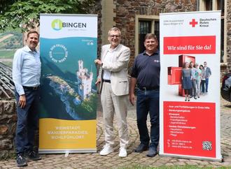 Der DRK-Ortsverein Bingen/Rhein-Nahe und die Bingen Tourismus & Kongress GmbH starten ein spannendes und innovatives Kooperationsprojekt. Oberbürgermeister Thomas Feser, Matthias Müller, der 1. Vorsitzende des Ortsvereins des Deutschen Roten Kreuzes Bingen/Rhein-Nahe und Jens Thiele, Geschäftsführer der Bingen Tourismus & Kongress GmbH stellten das Konzept bei einem Pressegespräch am 11. Juli gemeinsam vor.