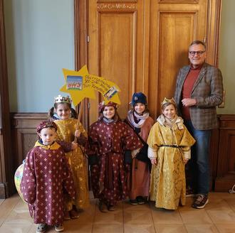 Oberbürgermeister Thomas Feser freut sich über den traditionellen Besuch der Kempter Sternsinger.