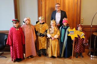 Oberbürgermeister Thomas Feser freut sich über den traditionellen Besuch der Kempter Sternsinger.