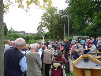 Immer Anfang Juni organisieren die „Byrtze“ Heimatfreunde Büdesheim e. V. das Bachfest am Entenbachteich. Auch in diesem Jahr war die größte Herausforderung, einen trockenen Abend zu gewährleisten, was dann auch tatsächlich wieder gut geklappt hat. Mehr als 150 Gäste freuten sich auf die Darbietung des Kirchenchores Cäcilia und genossen die tolle Stimmung. Der Kerbeclub sorgte für Getränke, die Feuerwehr für leckere Bratwürste. Auch der Heimatverein präsentierte sich mit verschiedenen Schautafeln und gab Informationen rund um den Entenbach und den Teich. An diesem Abend wurden auch neue Schilder angebracht, um darauf hinzuweisen, dass die Enten am Teich nicht gefüttert werden sollen, da dies sowohl der Wasserqualität als auch den Enten selbst schadet.