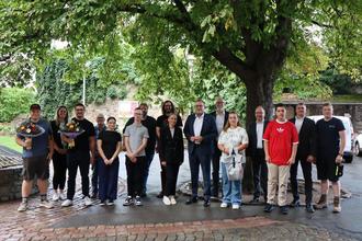 „Der 1. August ist immer ein markantes Datum in meinem Kalender: Dann steht meist der Neustart auf dem Programm. Heute ist es Ihr Neustart: für die Einen nach Abschluss der Schule der Ausbildungsbeginn und für die anderen: der Abschluss der Ausbildung und Start ins reguläre Berufsleben“, so Oberbürgermeister Thomas Feser anlässlich einer kleinen Feierstunde im Sitzungssaal von Burg Klopp.