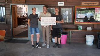 Die Vorsitzende des SuGHSV, Melanie Meudt, und Wolfgang Thomas (re.), Vorsitzender der Abteilung Ausbildung & Sport, nehmen den Scheck von Oberbürgermeister Thomas Feser dankend entgegen.