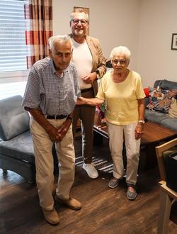 Oberbürgermeister Thomas Feser gratuliert dem Ehepaar Kerwer zur Gnadenhochzeit.