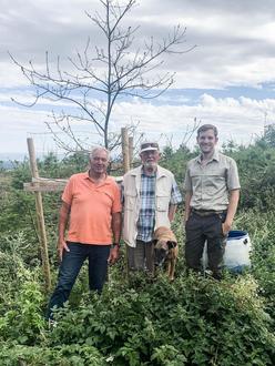 Heiko Schank (li.), Volkmar Berlin (Mitte) und Robin Feldmann vor der neugepflanzten Eiche.