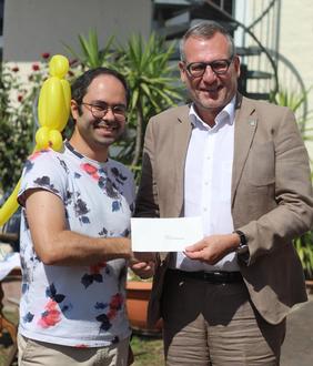 OB Thomas Feser gratulierte Pastor Artur Boldt zum 20-jährigen Jubiläum der BrunnenGemeinde.