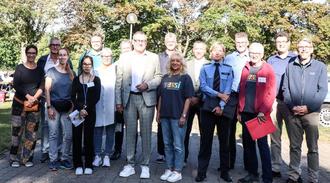 Oberbürgermeister Feser mit den Verantwortlichen des KPR, der Schulen und der Polizei.