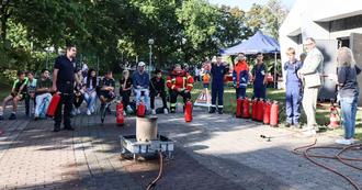 Oberbürgermeister Thomas Feser (2. v. re.) ließ es sich nicht nehmen, alle Stände zu besuchen – hier zum Beispiel bei der Feuerwehr.