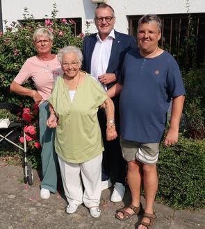 Es war für Oberbürgermeister Thomas Feser daher ein ganz besonderer Termin und eine große Freude, der Jubilarin am Mittwoch in Büdesheim zum 100. Geburtstag zu gratulieren. „Es ist ein wunderbares Glück, wie Sie dieses bemerkenswerte Fest feiern und ich hoffe von ganzem Herzen, dass Sie noch weiterhin so bewusst am Leben teilnehmen können“, so der Oberbürgermeister bei seinem Besuch.