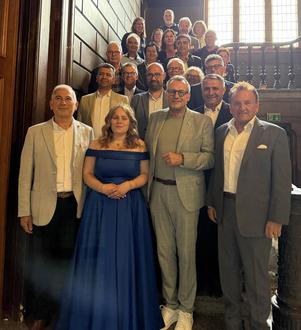 Deutsche und türkische Freunde stellten sich im Treppenhaus der Burg Klopp zum Gruppenbild.