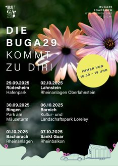 Die Roadshow ist der erste Schritt zur Einbindung der Menschen vor Ort und ein erster Schritt zur Aufwertung der Parks und Grünflächen. Die BUGA29 soll nicht nur Gäste ins Welterbe Oberes Mittelrheintal locken, sondern vor allem für die Bürgerinnen und Bürger einen Mehrwert schaffen.