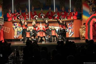 Für die 300 Männer im Saal war die BKV-Herrensitzung wieder eine tolle Show mit herausragenden Rednern, Showtänzen und Kokolores. Zu Beginn der Sitzung konnte der gut aufgelegte Sitzungspräsident Dr. Ralf Kohl unter großem Beifall Ulrich Schumacher die „Goldene Narrenkappe“ des BKV für sein 22-jähriges Jubiläum als Sekretär verleihen. Zwei weitere `Träger der Goldenen Narrenkappe‘ überzeugten mit ihren Vorträgen: Peter Eich als Denkologe und Michael Choquet mit seiner „Heute-Show“ – unterstützt von Dr. Stefan Blaesius und Pfarrer Markus Lerchl. Das Tanzmariechen-Paar Miriam Rappolt und Chantal Brown holten gleich zu Beginn die Männer von ihren Sitzen – wie auch die neuformierte BKV-Garde. Ein Höhepunkt der Sitzung waren wieder die „Dunnerwetter“ des BKV mit ihrem Showtanz „Moulin Rouge“ und einer beeindruckenden Choreographie.